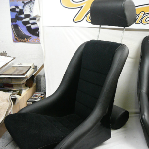 The factory and the customer used this R seat as the first supportive driver and co-pilot seat in their competition cars. Early versions didn’t have headrests. We now offer the version of this classic seat with option for the 5-point openings option , the attachment for the Trips device as well as headrest supports incorporated into the design and fiberglass seat shell.